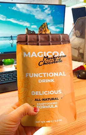 Într-unul dintre videoclipurile sale, fata a povestit cum să-ți faci stomacul mai mic și să te simți sătul după ce mănânci porții mici de alimente. Nu, nu este vorba despre rezecție gastrică, diete sau post. Metoda este mai simplă și mai gustoasă, tot ce trebuie să faci este să bei Magicoa în fiecare zi. Aceasta este o băutură instantanee cu ciuperci reishi. Am ezitat din cauza ciupercilor, așa că am căutat pe Google și am aflat ce sunt aceste ciuperci. S-a dovedit că acestea sunt folosite pentru a reduce pofta de mâncare, pentru a îmbunătăți digestia și pentru a stimula metabolismul în medicina orientală. Orientalii adaugă aceste ciuperci într-o varietate de feluri de mâncare, de la supe și garnituri până la băuturi revigorante și chiar deserturi, ascunzându-le cu mirodenii parfumate. Ciuperci reishi care se conțin în Magicoa sunt preparate într-un mod special care permite păstrarea proprietăților utile și ascunde aroma lor distinctivă. De aceea Magicoa este atât de gustoasă și miroase atât de bine! Nu trebuie să ții o dietă și poți face sport dacă dorești. Este adevărat? Dacă da, ar fi o opțiune perfectă pentru mine!